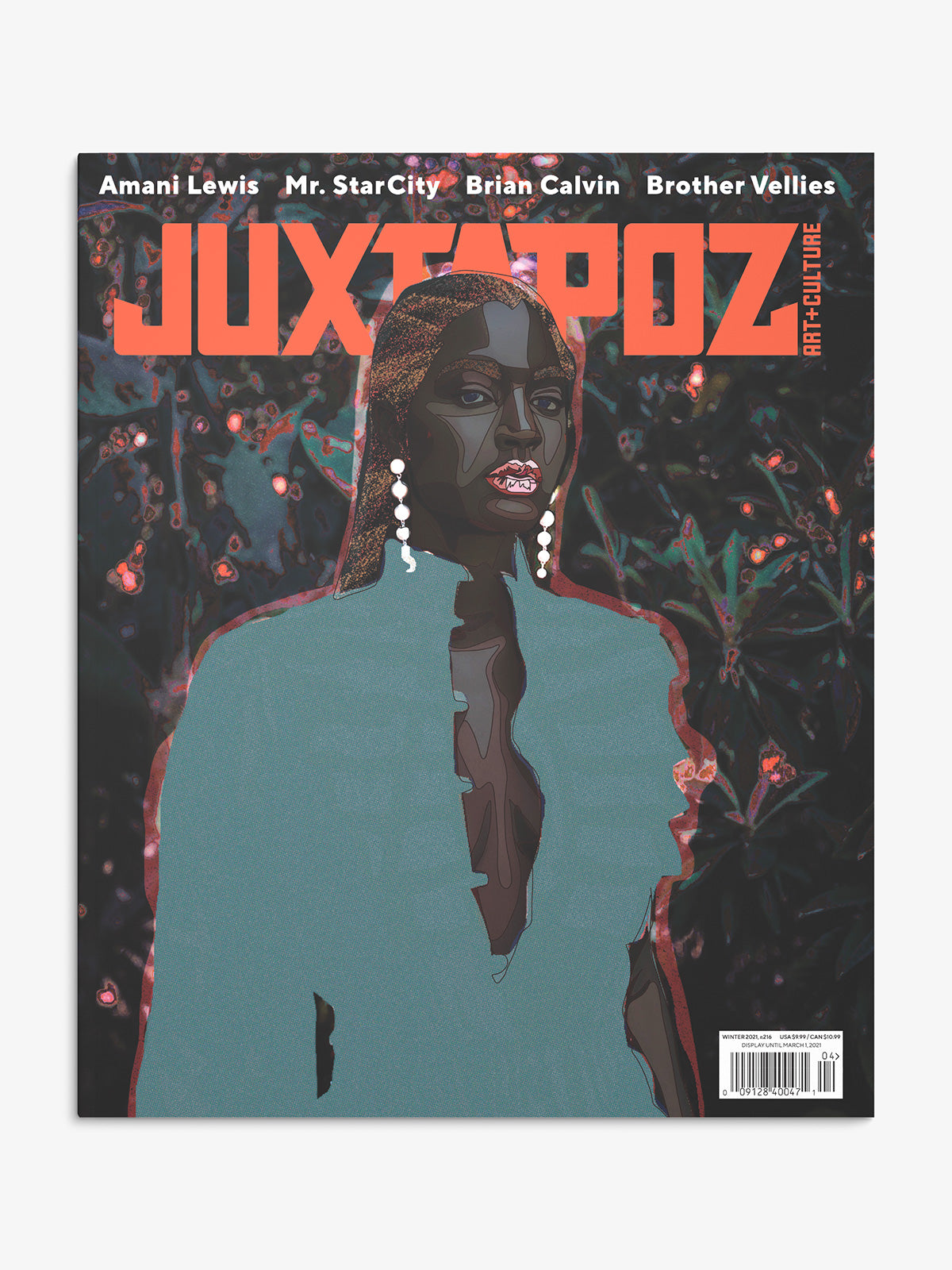 Winter 2021 cover artist, Amani Lewis, is a brilliant emerging voice who combines so many mediums in their work that we feel like we are going through our own schooling to understand their craft. But one thing is certain: Lewis is part of a new generation of artists for whom collaboration is the lifeblood, inviting us to share their collective practice. Mr StarCity, the NYC-based painter who has channeled infectious love and care for others into his professional vision, is on the brink of a major moment, soothing many of us along the way. Steven Sweatpants, Aurora James, Trey Abdella, Danica Lundy, Brian Calvin, Otis Kwame Kye Quaicoe, Bianca Nemelc, Maria Qamar… these are all fresh thinking artists who exemplify what a new decade will begin to look like in art. Collective mindsets, inclusive visions and a refusal to be predetermined by the past.